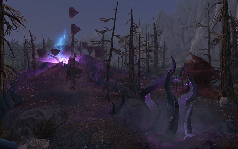 Но гораздо важнее для культа было ощущение удаленности этих земель от всего остального мира. В тусклом свете нагорья тени кажутся глубже. Кажется, что и солнце, и Азерот остались где-то очень далеко. Проявления всех стихий выражены четче: жарче горит огонь, сильнее льет дождь, а дрожание земной поверхности говорит о том, что колоссальные силы дремлют внутри земли. Но это не пугает членов клана Сумеречного Молота, это вселяет в них покой.